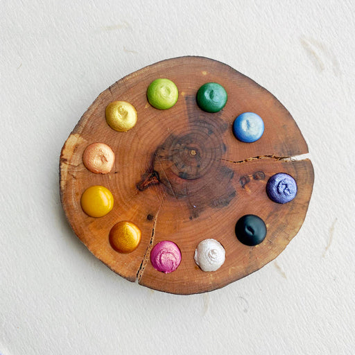 Silver and Gold in 5/8” pans the same amount of paint as our paintstones. Hand cut and sanded palettes made from reclaimed birch, with bark still o...